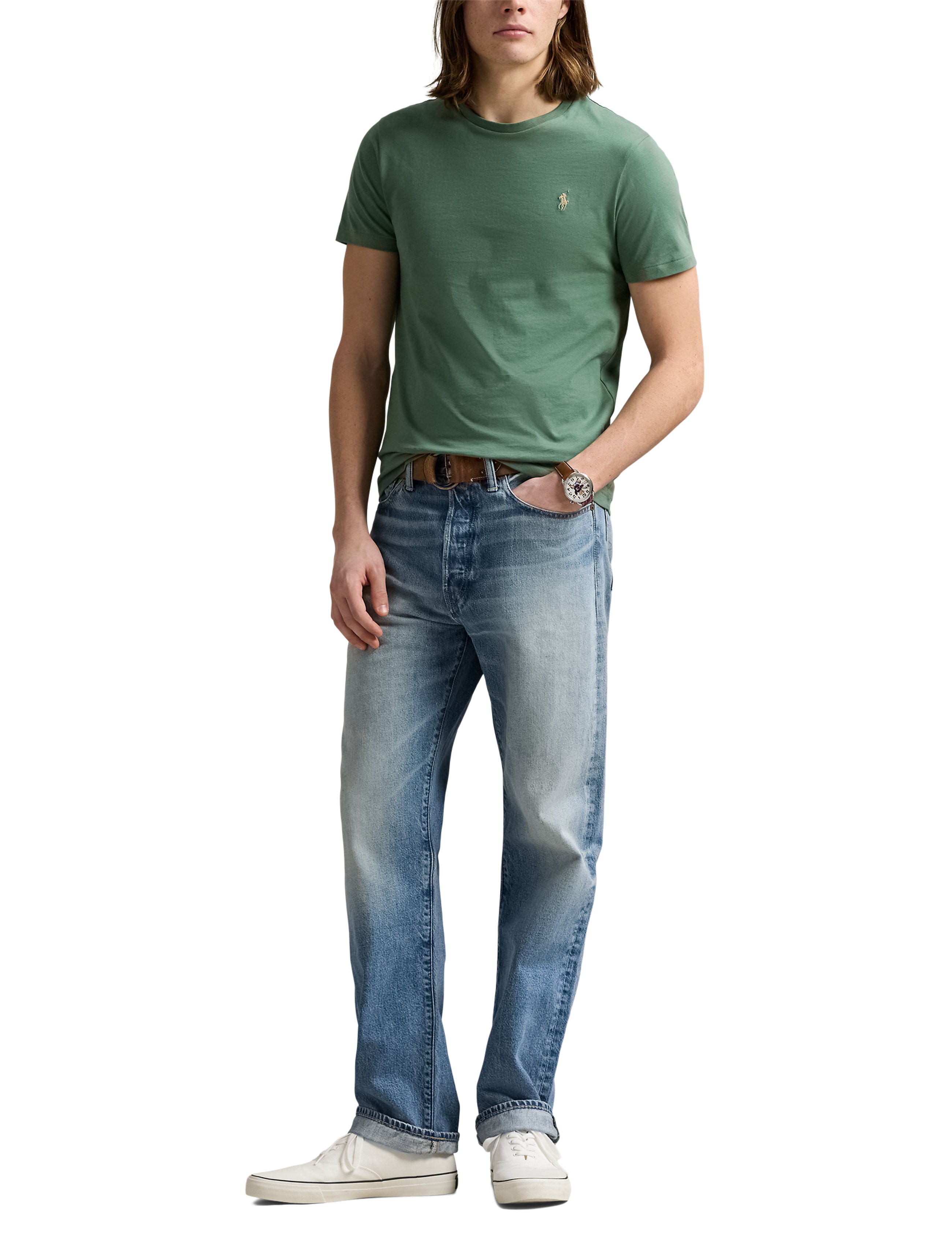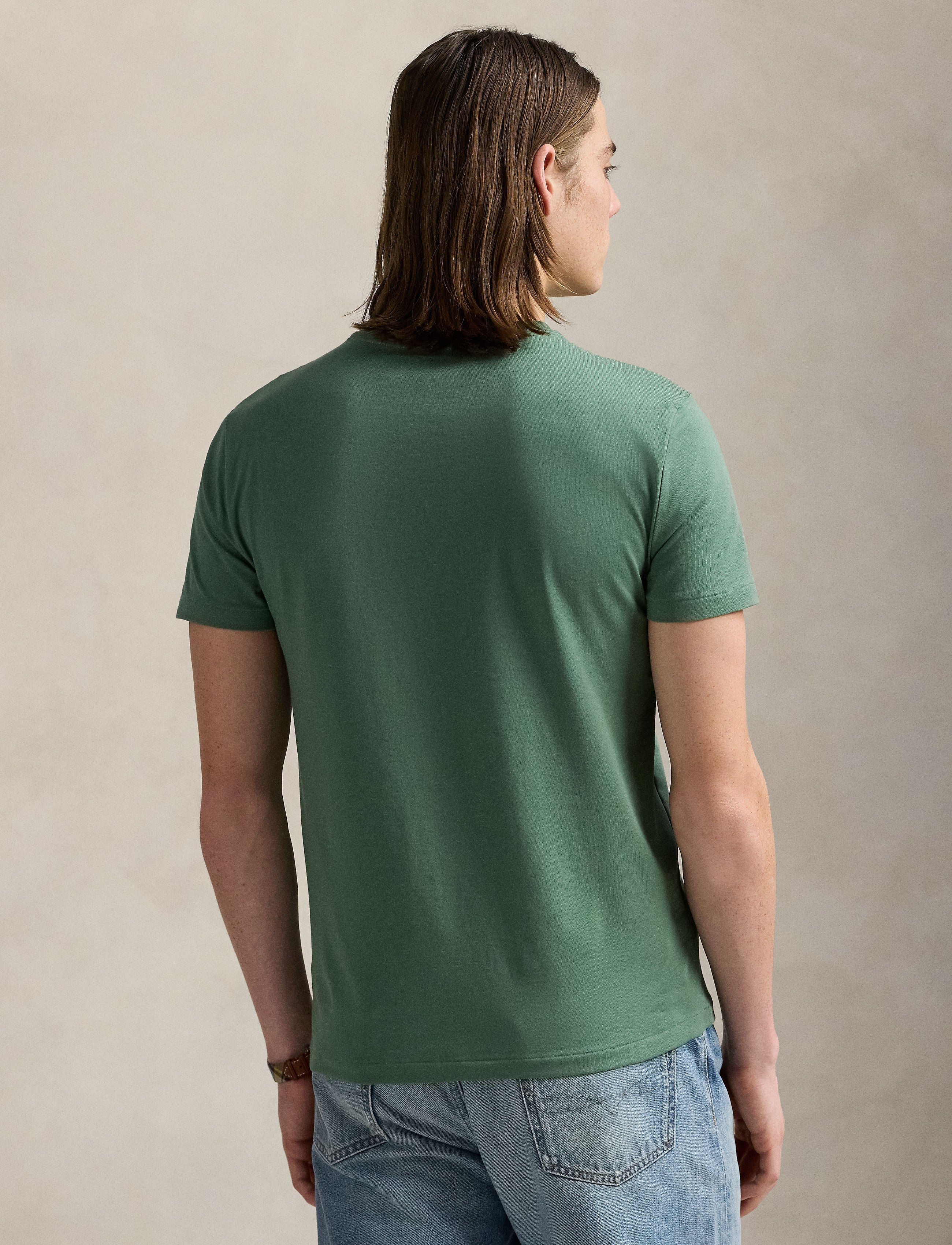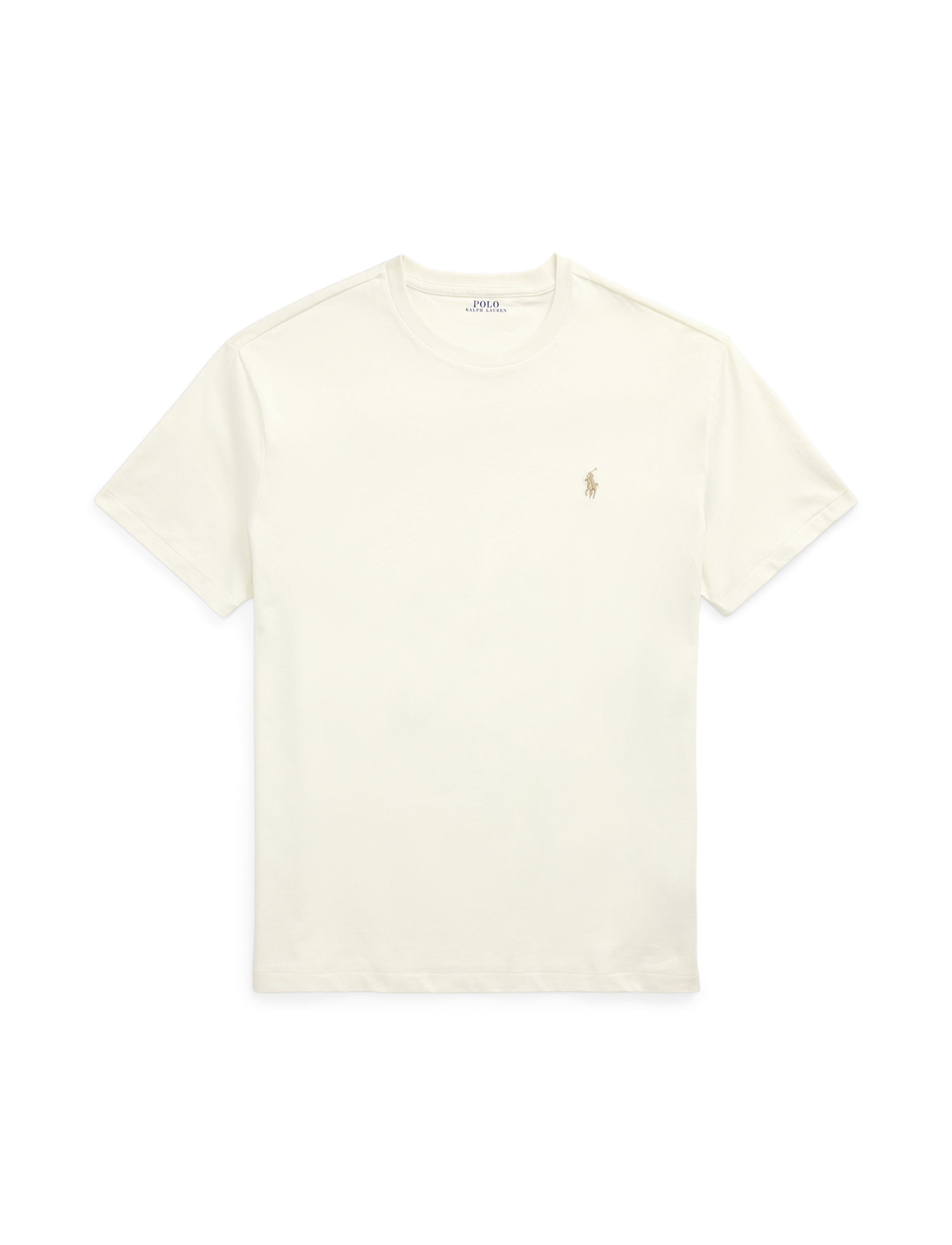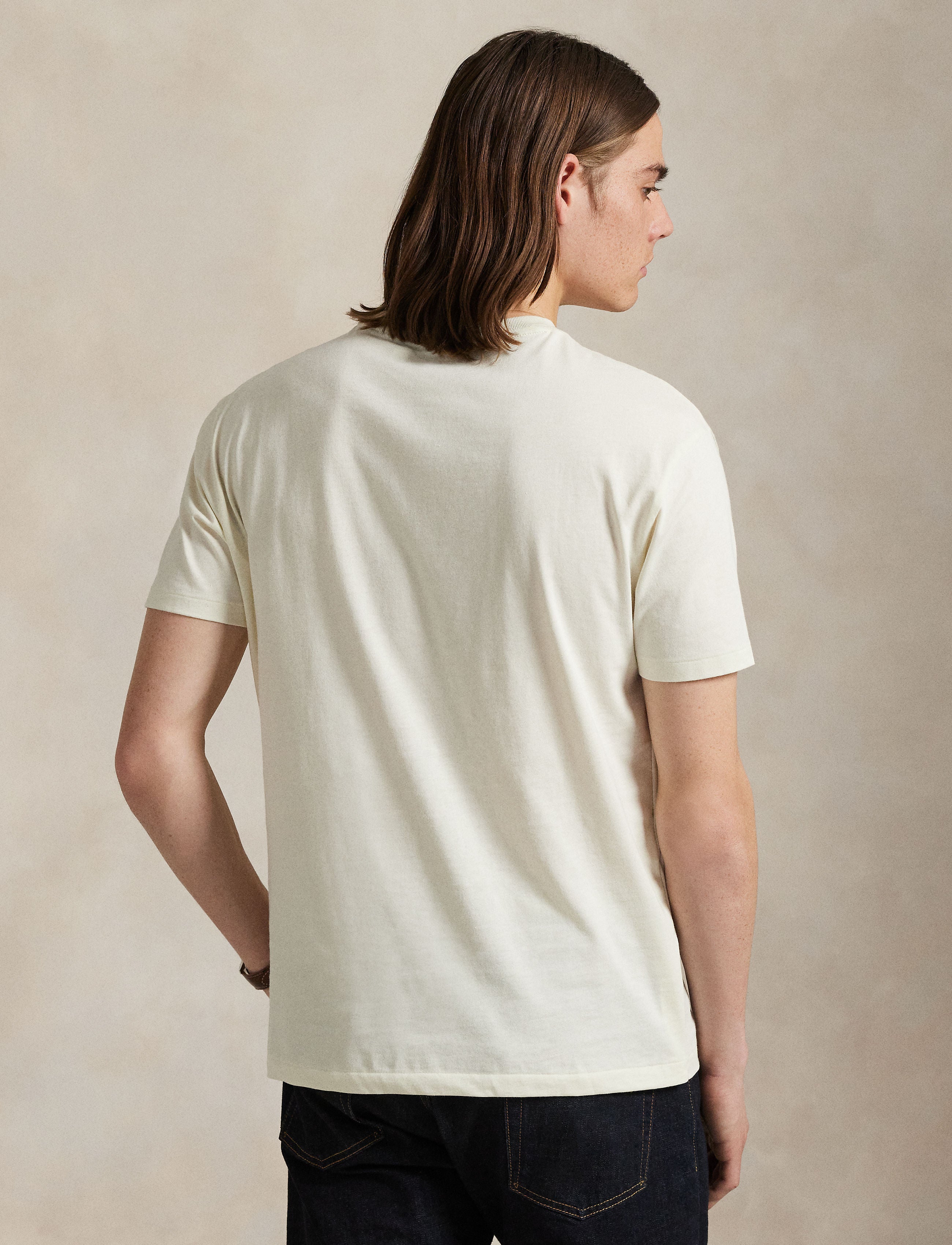 This sophisticated Polo Ralph Lauren Men's Jersey Crewneck Tee in verdant green or cream combines timeless style with exceptional comfort. Crafted from pure cotton jersey, this short-sleeve essential features the iconic embroidered Pony emblem at the left chest—a subtle hallmark of distinguished quality and heritage craftsmanship.