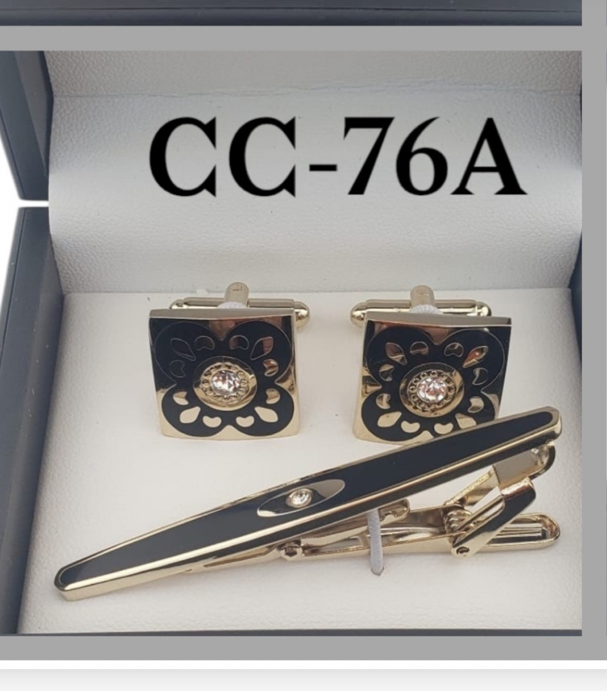 Elevate your formal attire with the Endless Knot Men's Cufflinks Set, featuring a sophisticated gold finish accented by a striking black outline design on square cufflinks. This set also includes a matching black and gold clip-on tie pin, offering a cohesive and polished look. Crafted for style and ease, these accessories provide a refined touch to any dress shirt and tie combination.
