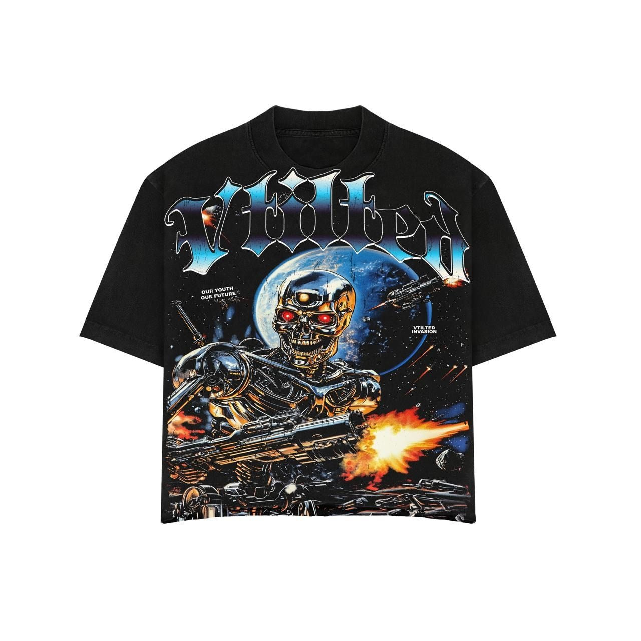 Step into bold self-expression with the V-Tilted Tee Shirt in Void Existence. This striking black tee features eye-catching graphics on both the front and back, making a statement from every angle. The classic crew neckline and straight hem deliver a clean, versatile fit that works with any casual wardrobe. Perfect for those who embrace edgy, contemporary style without compromising on comfort. A must-have piece for graphic tee enthusiasts.