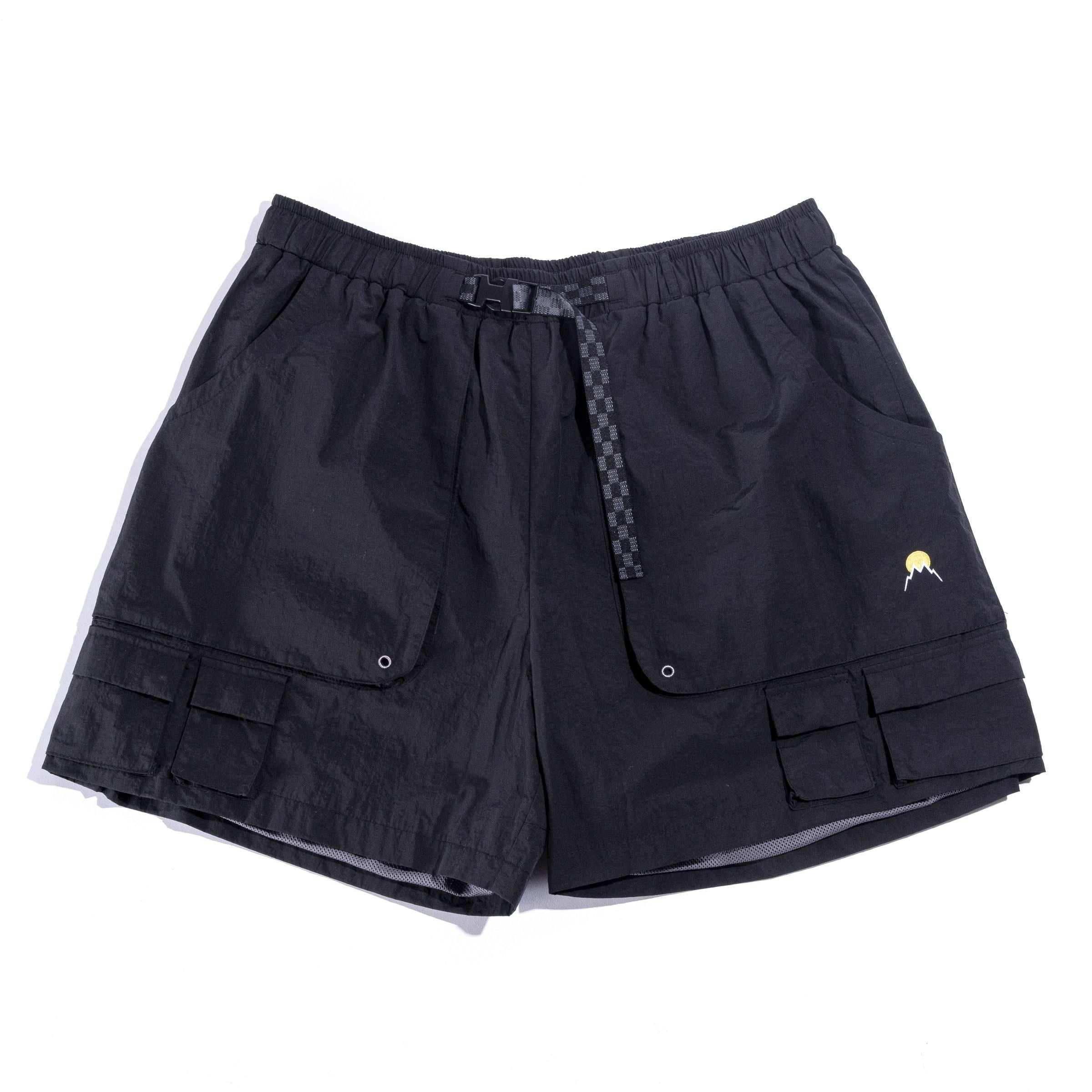 Indulge in the nostalgia of a Memory Lane with our Vagabond Shorts. Made with 100% nylon and a mesh lining, these black shorts are both functional and stylish. The polyester webbing belt with snap buckle, front bellowed pockets, and back pockets with flaps add a touch of luxury, while the front hip embroidery elevates this timeless design. Perfect for any adventure, these shorts are a must-have in every fashionable man's wardrobe.