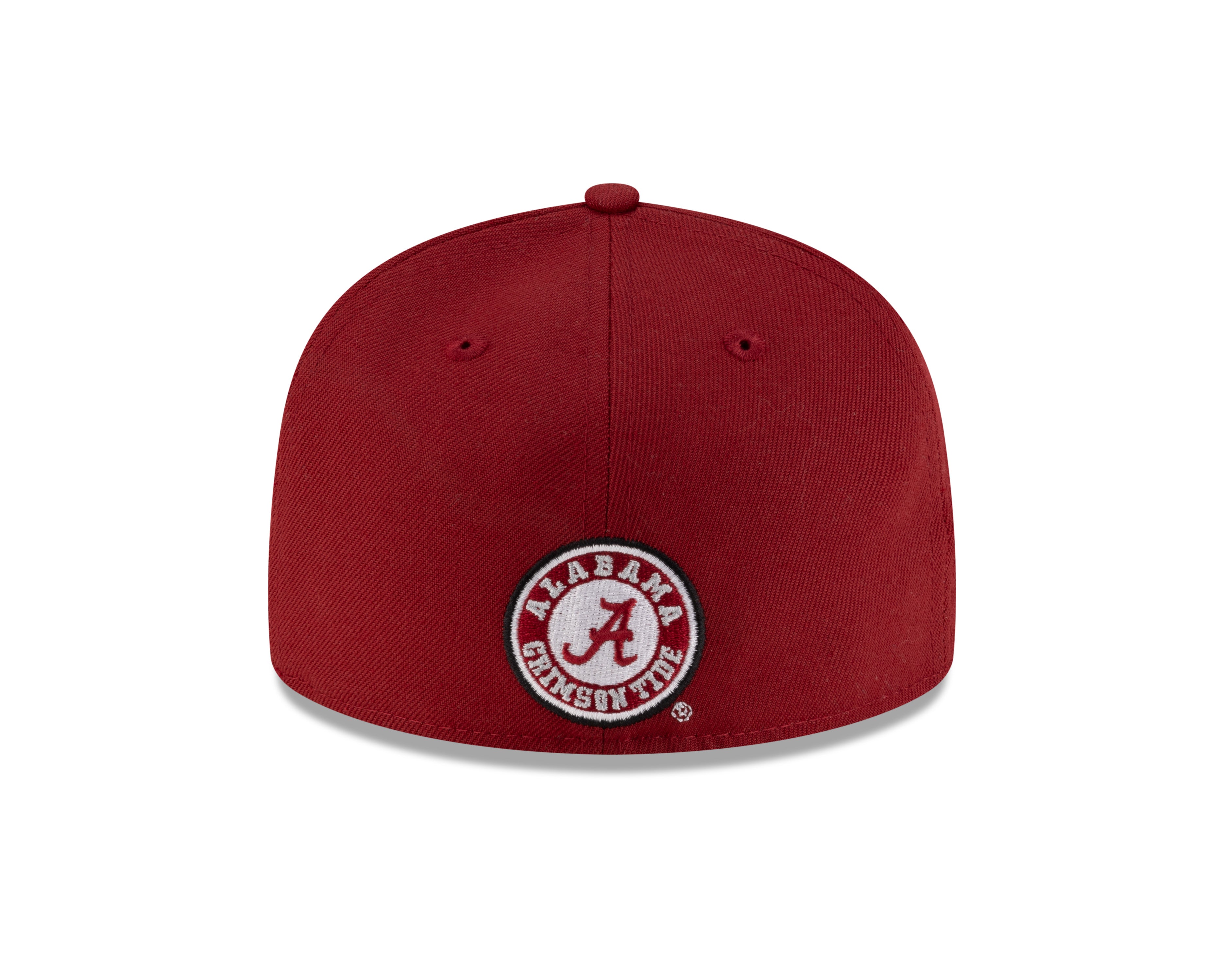 Embody the refined spirit of the Alabama Crimson Tide with our New Era 59 / 50 men's fitted hat. In deep crimson and khaki, the Alabama "A" in white and the Tide logo on the back evoke elegance and loyalty. The green visor and crimson button on top add flair. Take pride in Alabama with this sophisticated hat.