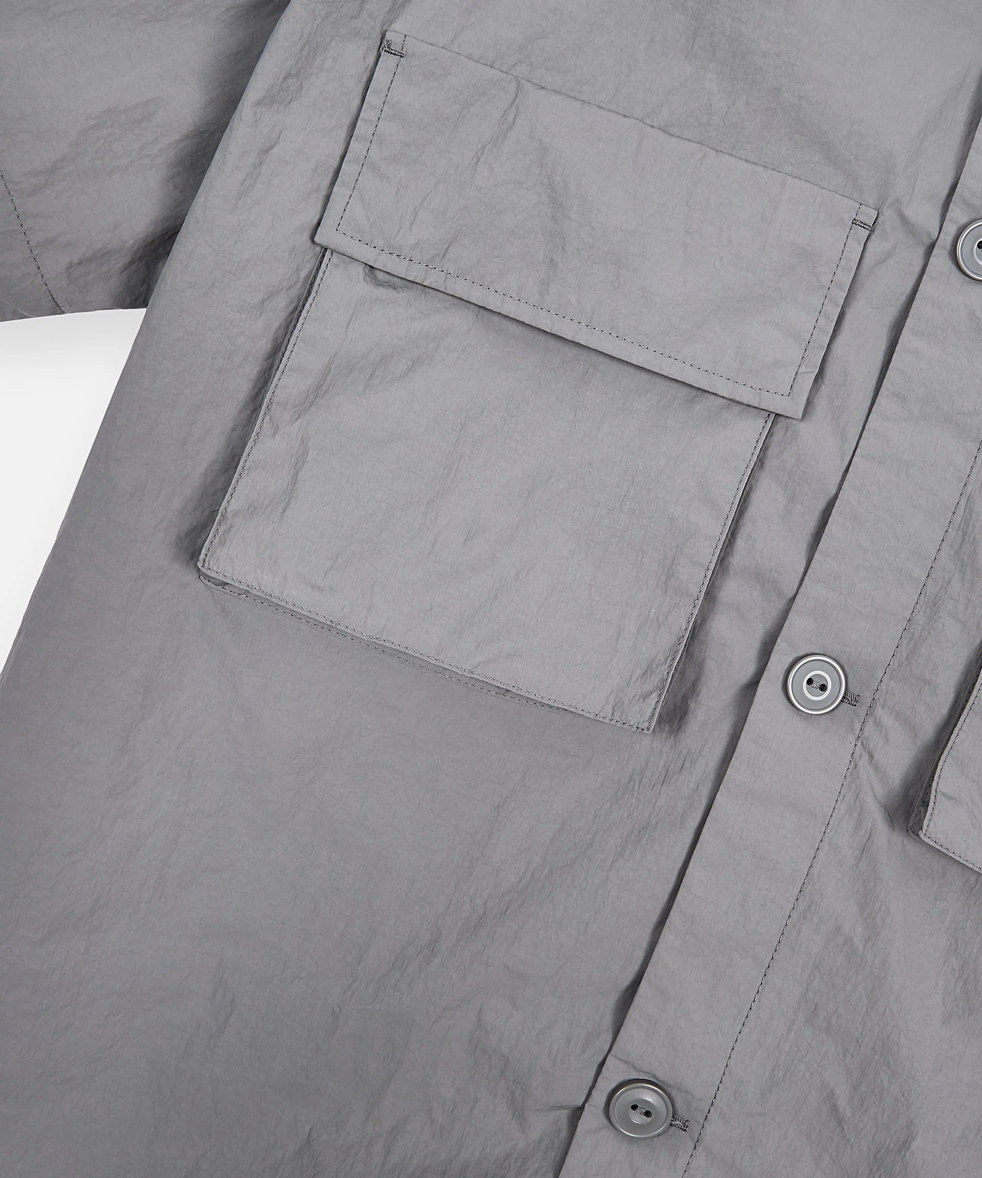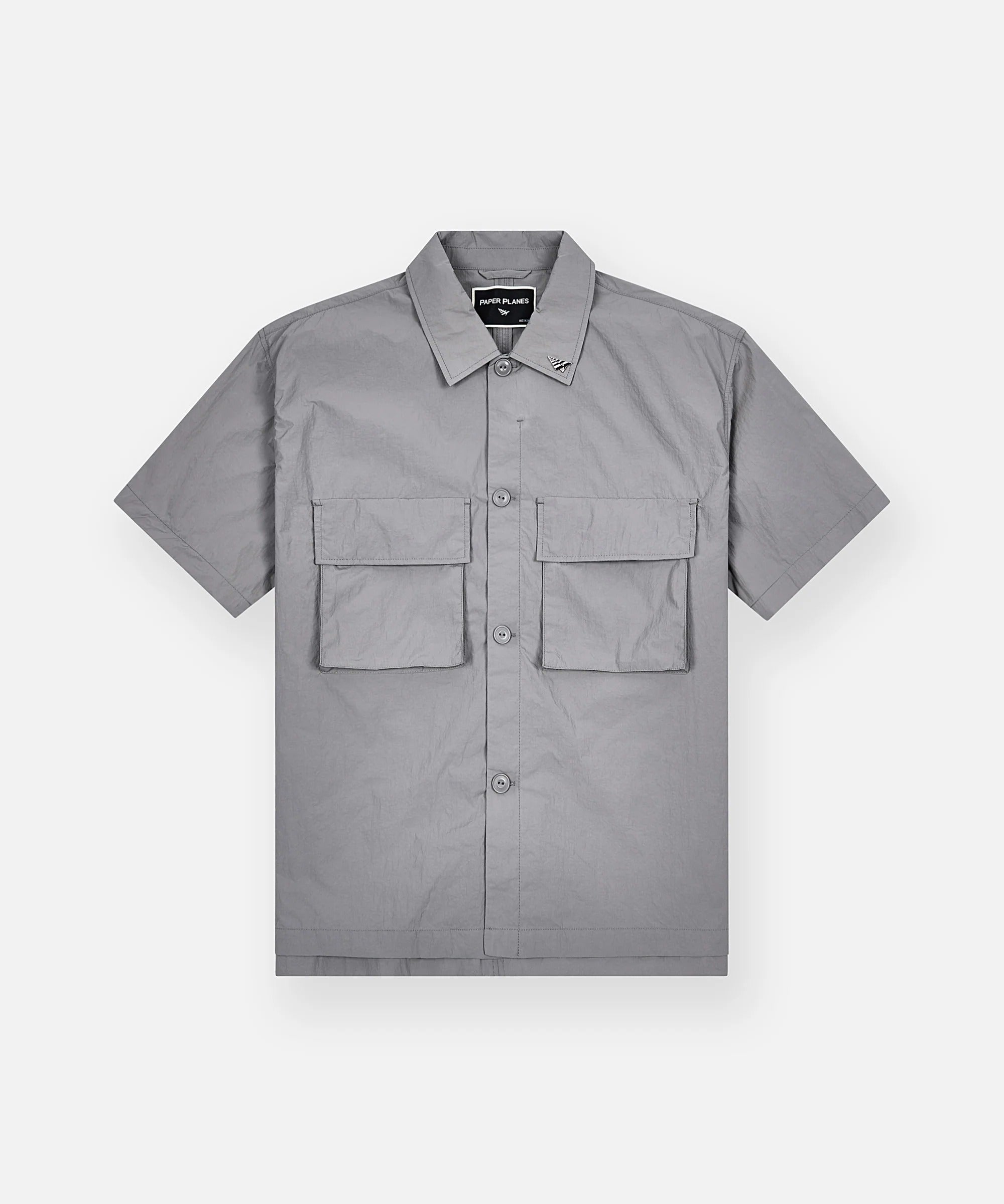 Elevate your casual wardrobe with the Paper Planes Coastline Cargo Shirt. Crafted from 100% polyester, this grey short-sleeve shirt offers a refined yet relaxed look. Featuring a button-down front and discreet snap-closure patch pockets, it combines practicality with sleek design. Side vents enhance comfort and mobility, making it an ideal choice for effortless style throughout the day.