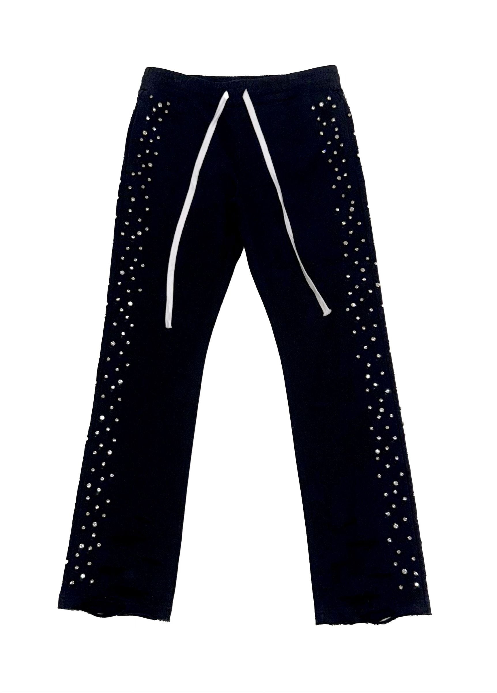 Experience refined comfort with the Embellish Ice Lounge Pant in sleek black. Designed with an elasticated waistband and drawstring, these pants offer a customizable fit for all-day ease. The open bottom hem adds a modern touch, while subtle rhinestone detailing along the sides elevates the look with understated sophistication. Perfect for lounging or casual outings, these pants combine style and functionality effortlessly.