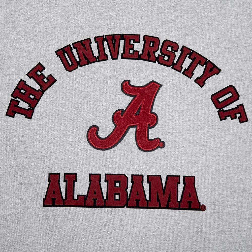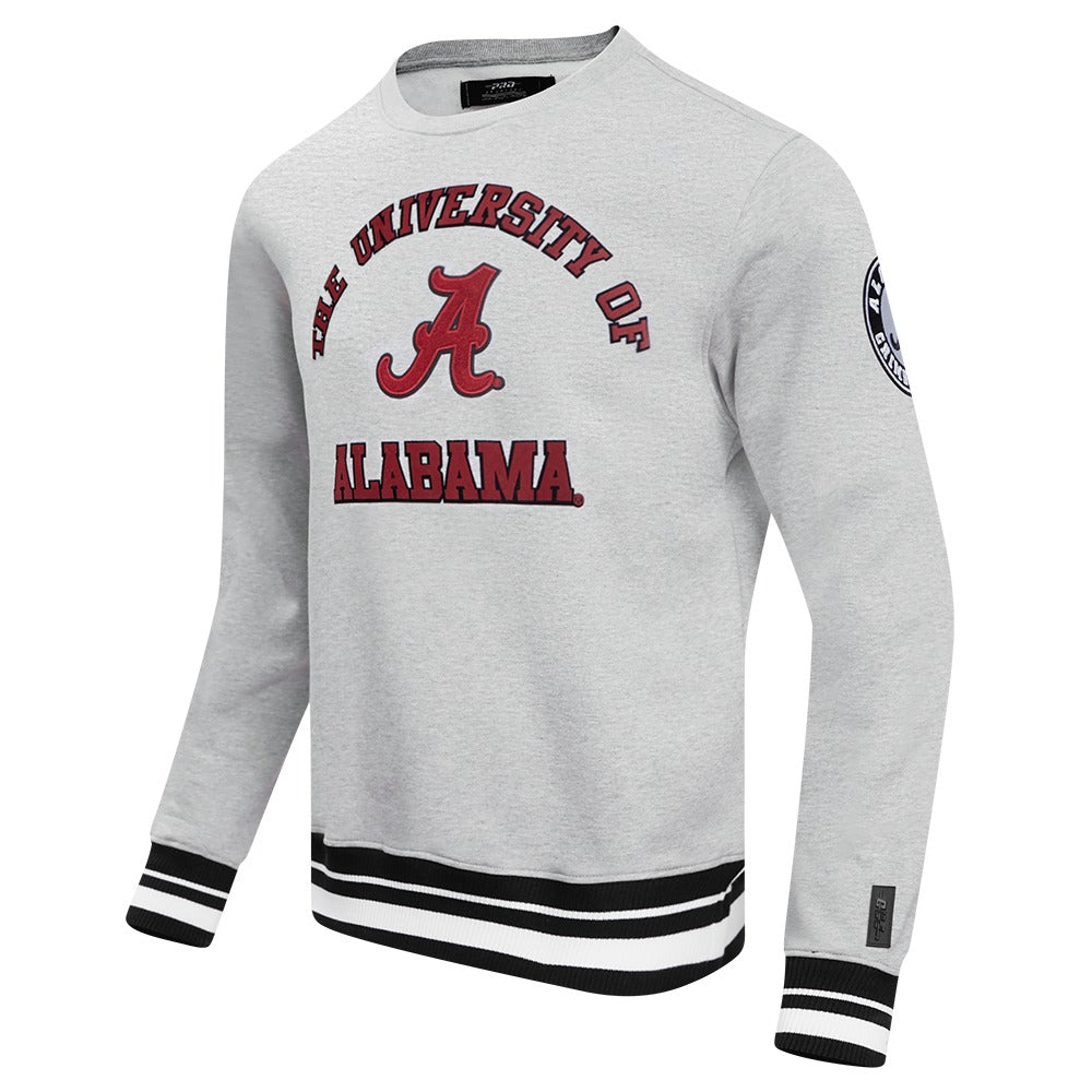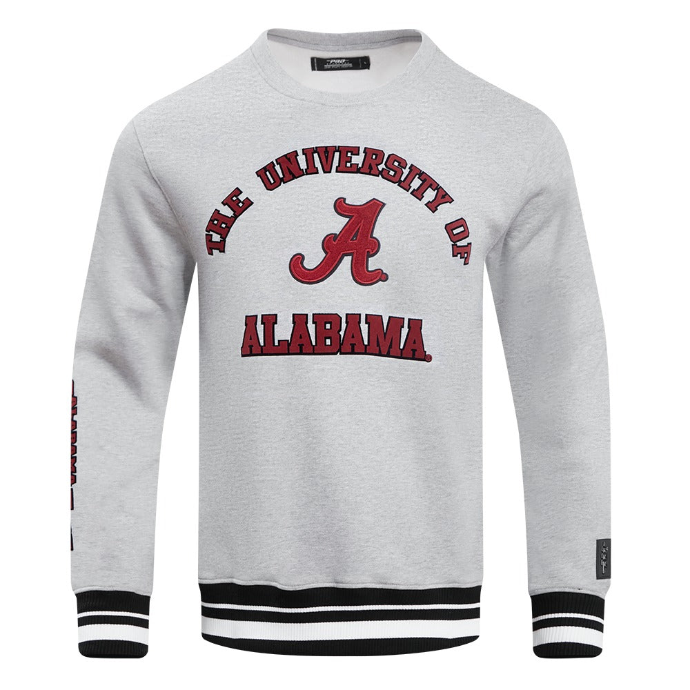 Elevate your casual wardrobe with this Pro Standard Men's Sweatshirt, featuring authentic University of Alabama college styling. The heather grey colorway showcases classic chenille detailing that captures the spirit of game day tradition. Designed with a comfortable crew neckline, elasticated waistband and arm cuffs ensure a secure fit, while subtle striped accents add visual interest. The regular fit silhouette offers versatile styling for everyday wear or spirited fan occasions. Quality construction meets timeless collegiate appeal in this essential layering piece.