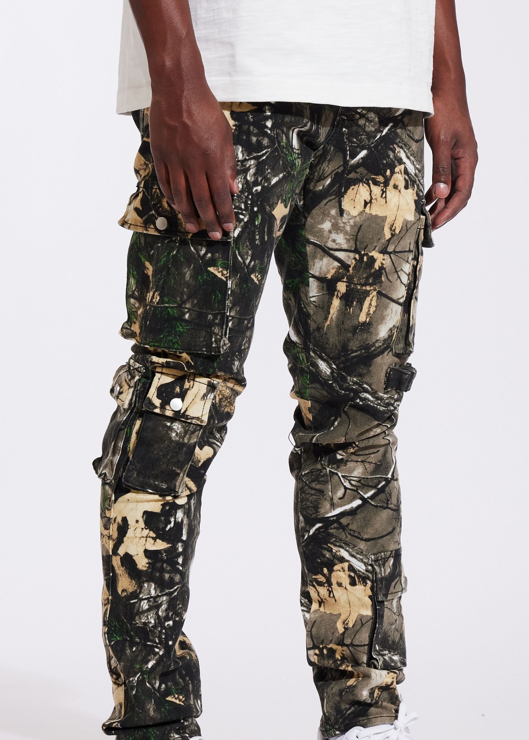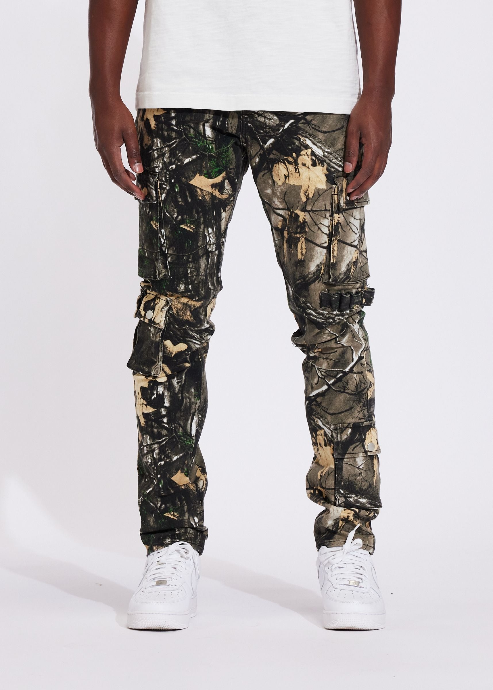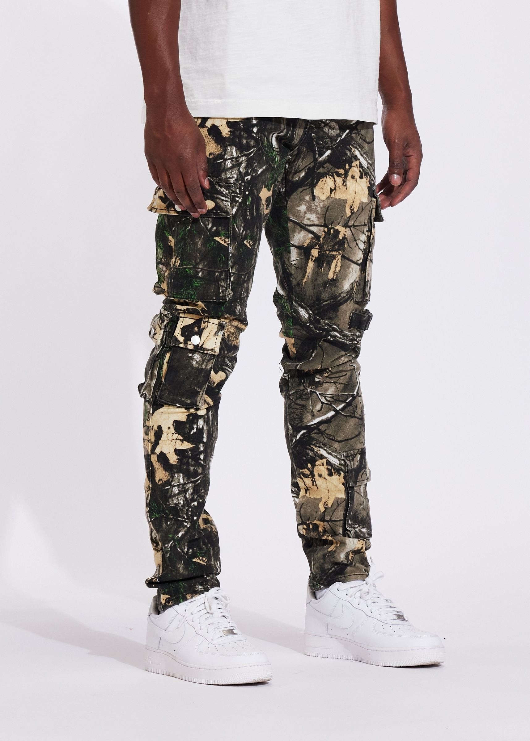 Elevate your casual wardrobe with Crysp Denim's Arrow Skinny Cargo Jeans in distinctive Woodland Camo. These meticulously crafted regular fit jeans combine the refined silhouette of a skinny cut with practical cargo pocket styling. The sophisticated camouflage pattern offers versatile styling options for the discerning gentleman seeking both functionality and contemporary fashion sensibility.