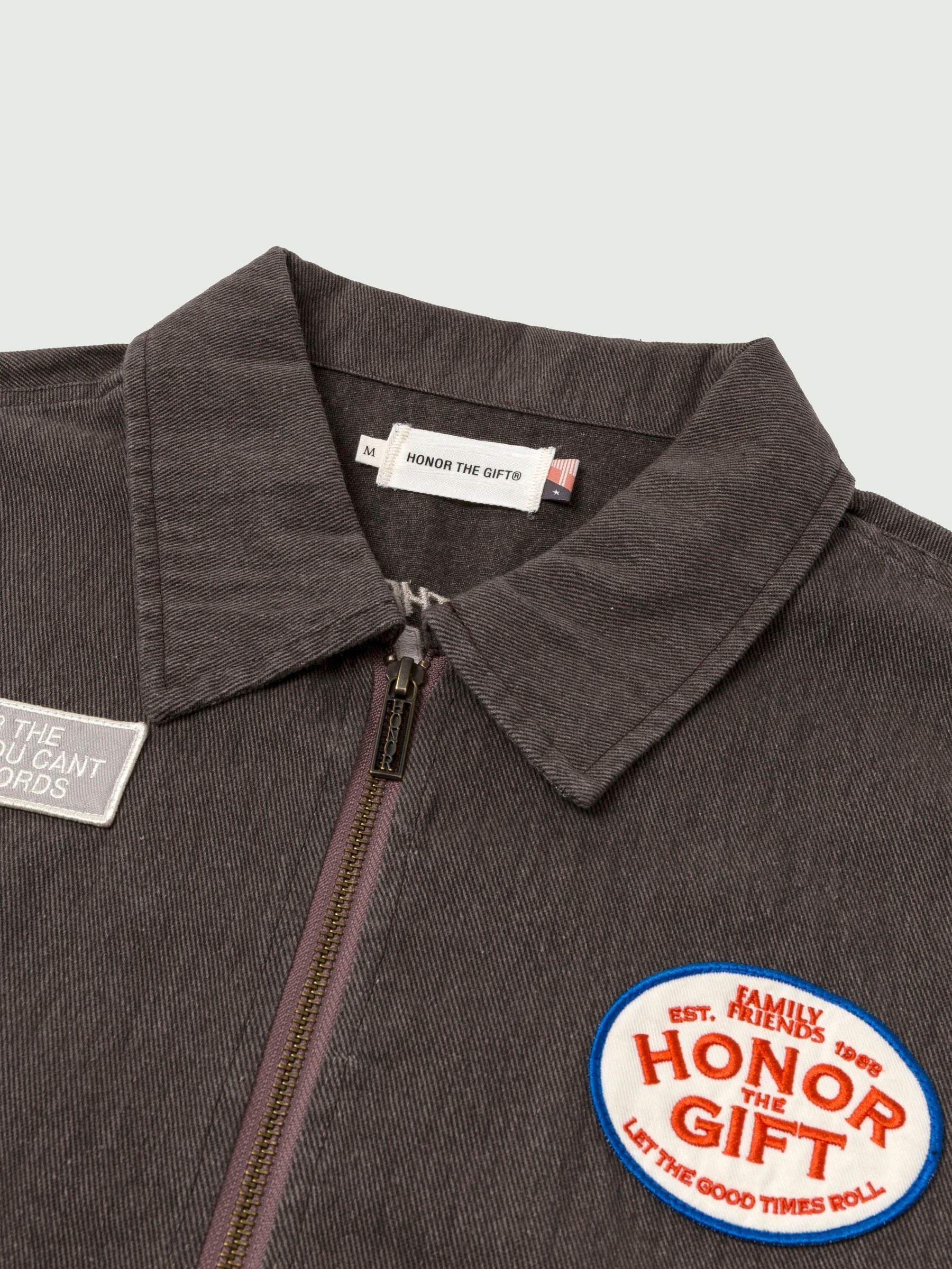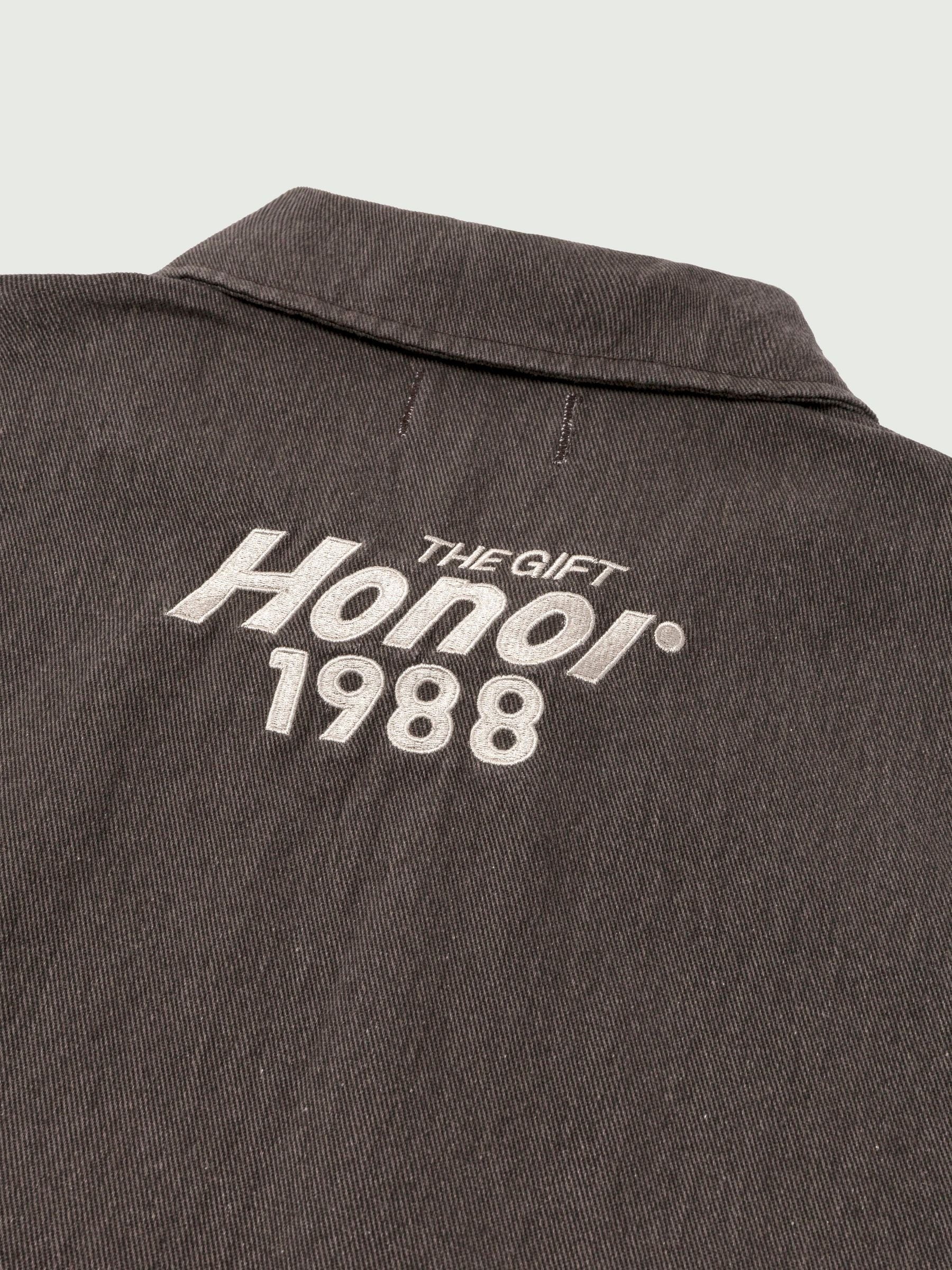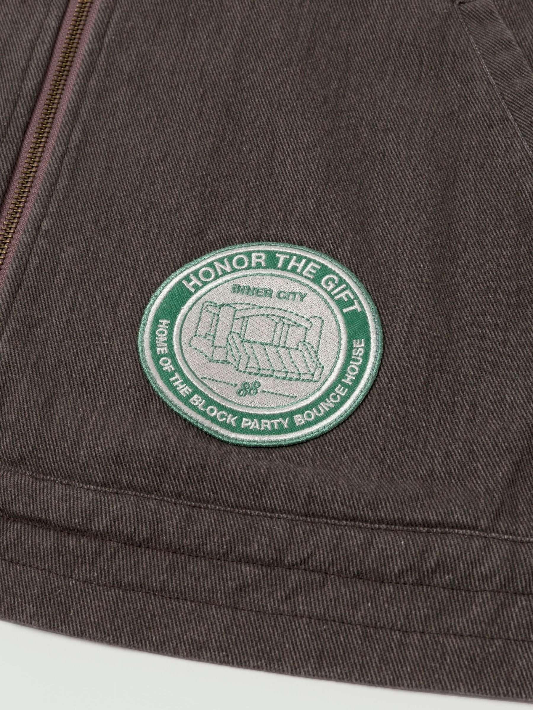 The Honor The Gift Twill Full Zip Shirt combines classic style with modern details. Crafted from 100% cotton twill, this black short-sleeve shirt offers durability and comfort. Its full zip design allows for easy layering, while distinctive Block Party patches add a unique, refined touch. Ideal for those seeking a versatile, expertly tailored piece that stands out with subtle sophistication.