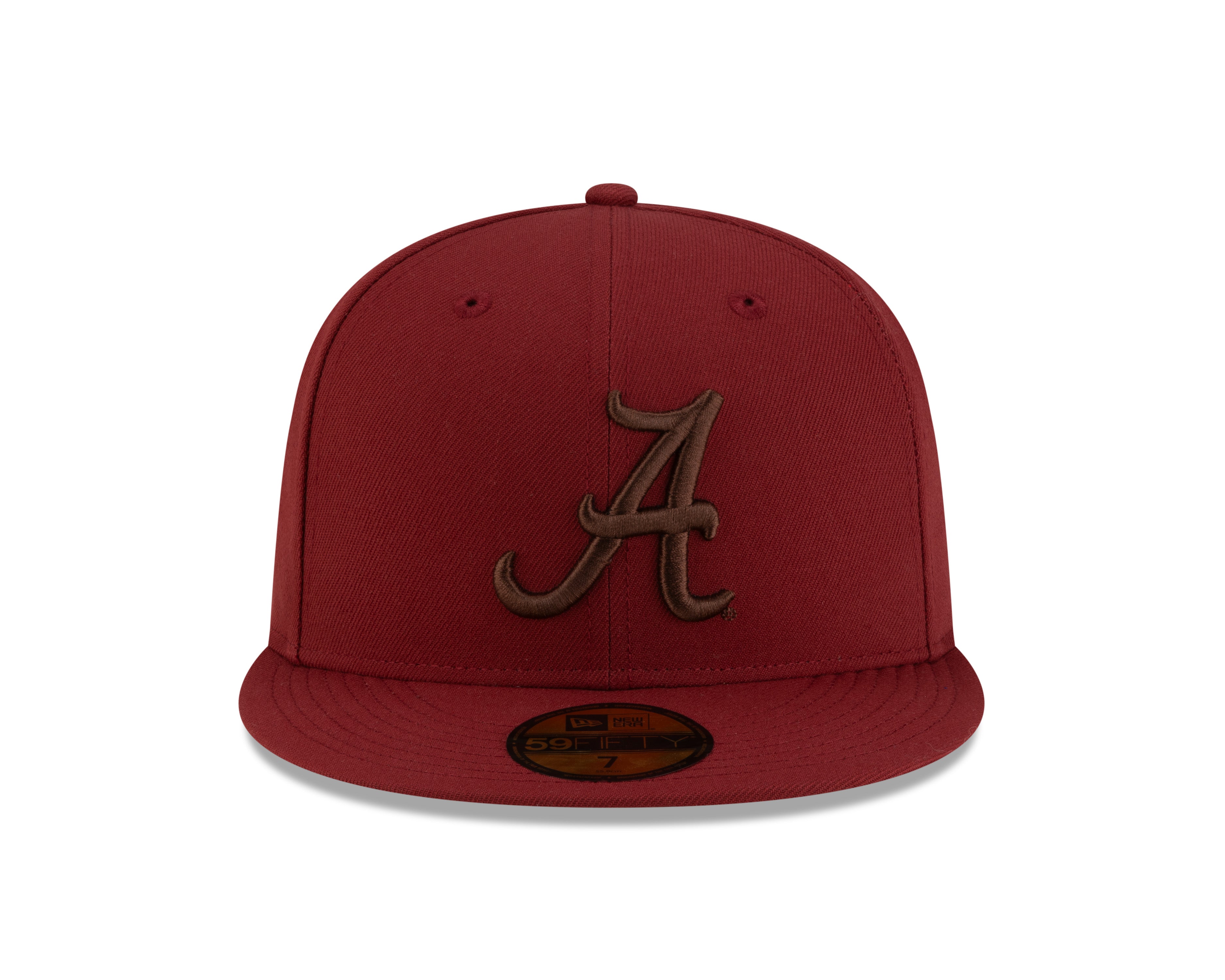 This New Era 59/50 men's fitted hat in Brick Red features the Alabama Crimson Tide’s iconic "A" logo in a distinctive walnut brown on the front. Designed with a grey undervisor for reduced glare and a matching brick red button on top, it offers both style and function. The Alabama Crimson Tide logo on the back adds an authentic finishing touch, making it a must-have for dedicated fans seeking expert-quality headwear.