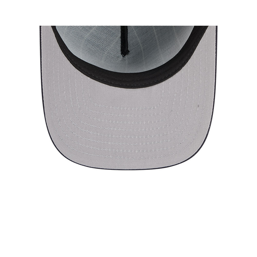 New Era's 59/50 fitted cap delivers authentic baseball style with the Atlanta Braves' iconic "A" logo prominently displayed in white on the front. The pale blue crown features crisp white pinstripes for a classic look, complemented by a navy button at the apex and grey undervisor. This structured A-frame silhouette provides a premium fit that serious fans and collectors appreciate. Perfect for game day or everyday wear, it combines heritage design with quality construction that New Era is known for.