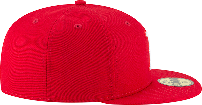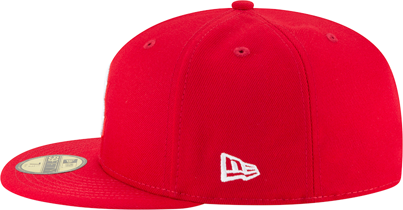 This New Era 59/50 fitted hat showcases the Boston Red Sox in a refined red and white color scheme. Featuring a striking all-red crown with crisp white "B" lettering on the front, it offers a classic yet polished look. The red button atop and grey under visor add subtle contrast, making it a sophisticated choice for fans seeking both style and team pride.