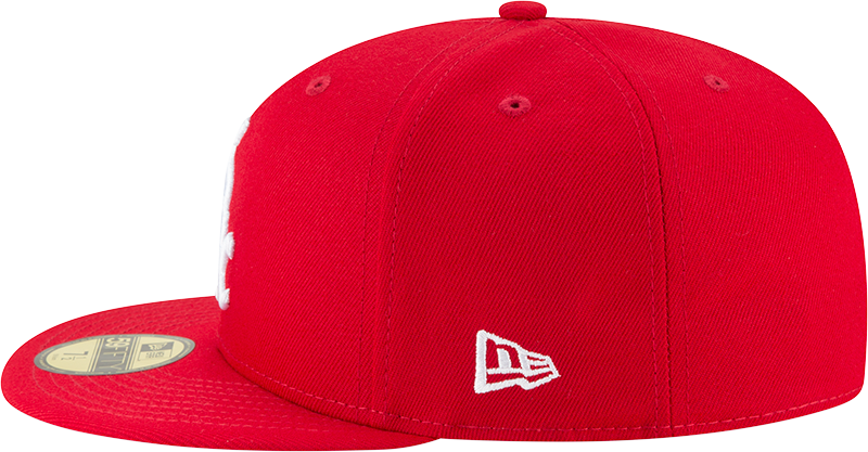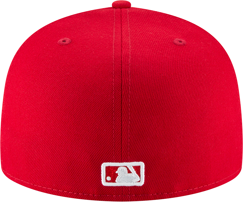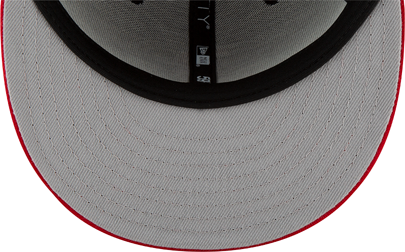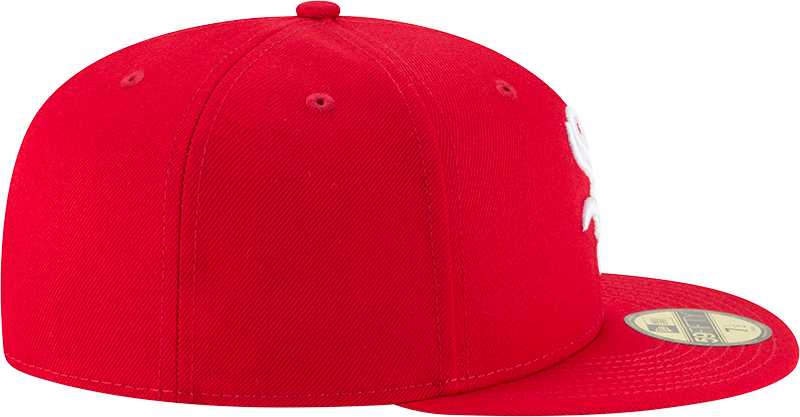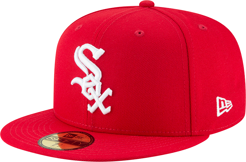 This New Era 59/50 fitted hat presents the Chicago White Sox in an elegant red and white palette. Its all-red crown is accented by sharp white "SOX" lettering, complemented by a red button and a grey under visor for subtle contrast. Perfect for fans who appreciate refined style while showing team pride.
