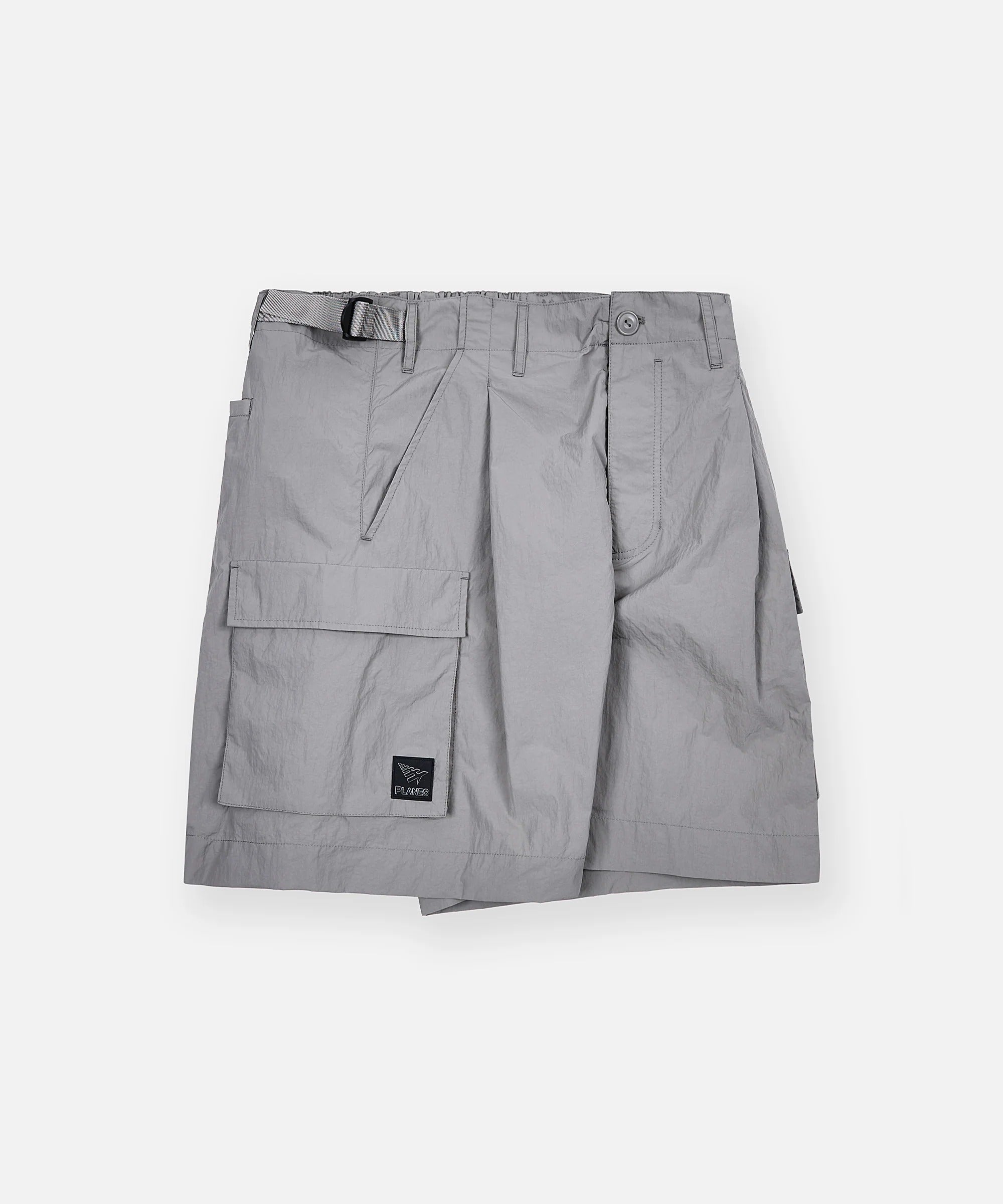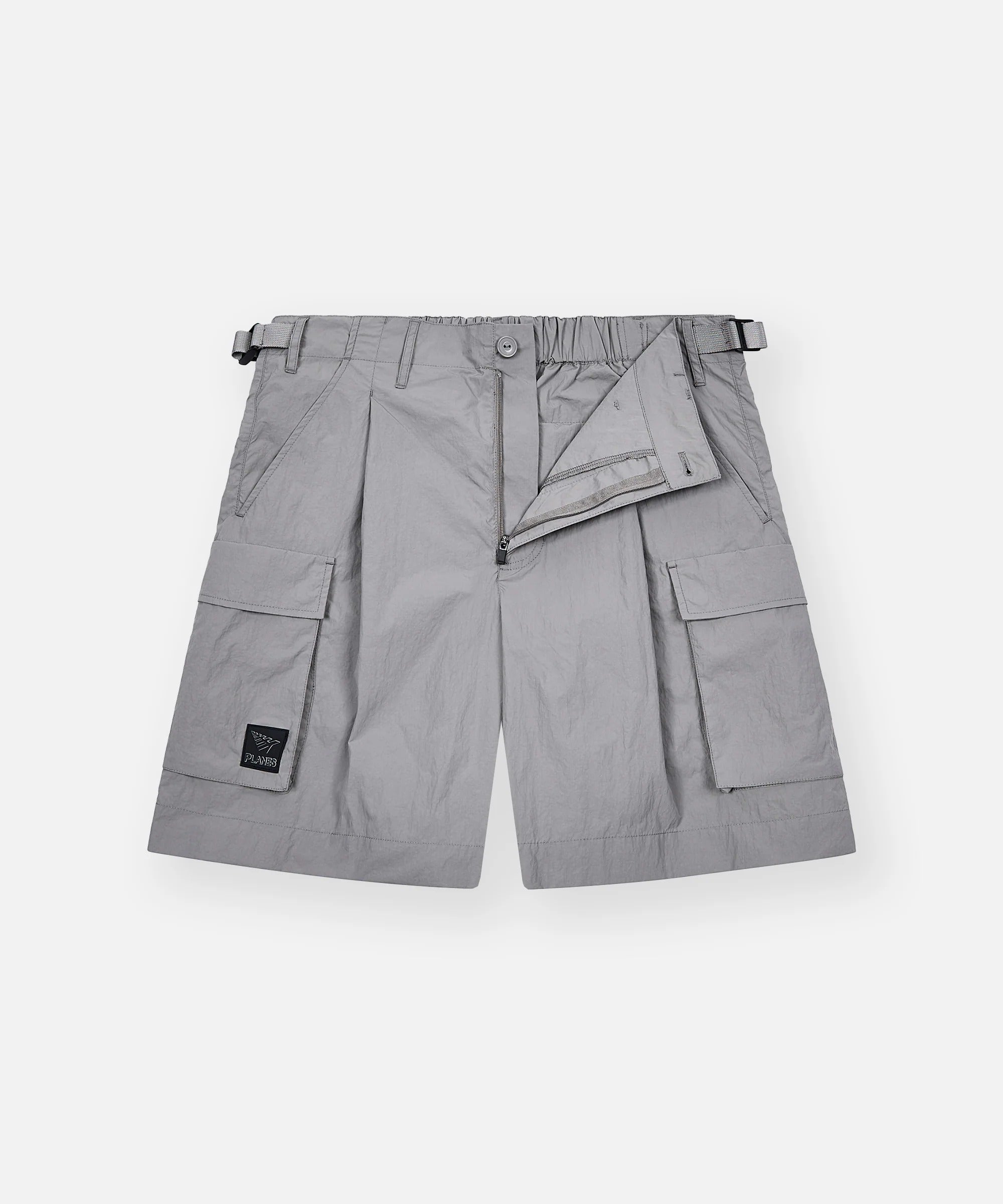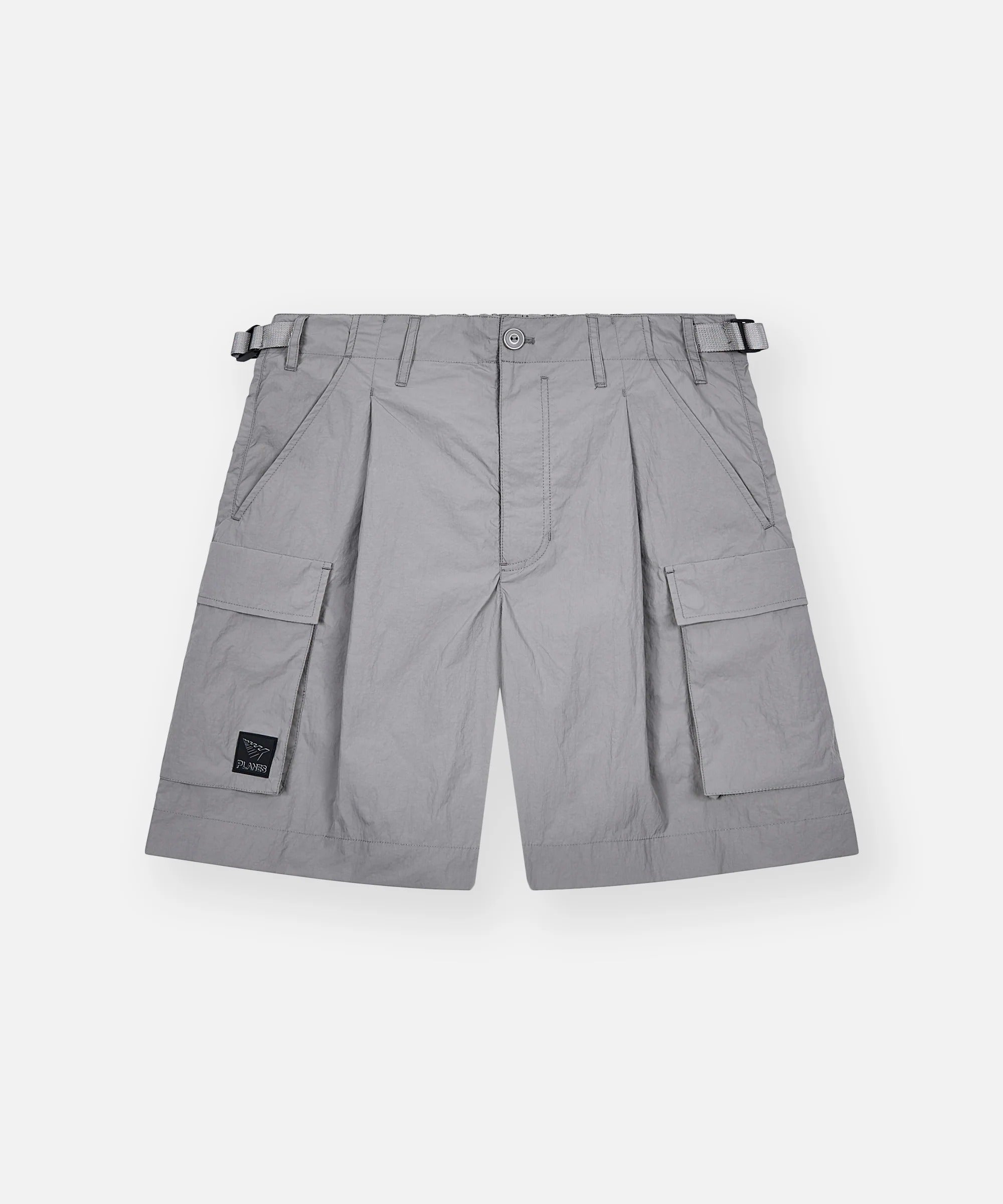 Elevate your casual wardrobe with the Paper Planes Coastline Cargo Short in grey. Crafted from 100% polyester, these shorts feature a refined fold-over waistband with a front button closure and belt loops for a tailored fit. The zip fly and pleats add subtle sophistication, while hidden media pockets and side cargo pockets with concealed snaps offer practical storage without compromising style. Perfect for the modern man seeking comfort and functionality with a polished edge.