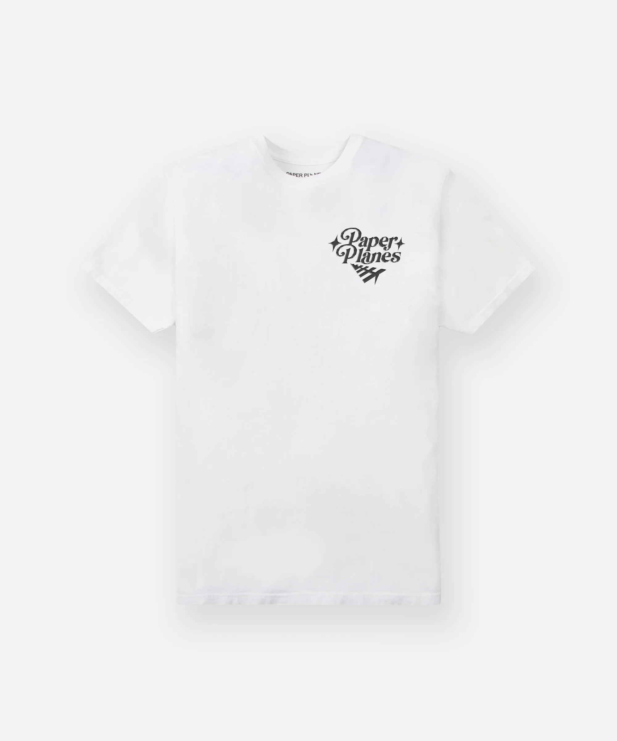 This white evergreen Paper Planes tee combines comfort and style with 100% cotton fabric that ensures breathability and softness. Featuring distinctive graphics on both front and back, it offers a contemporary edge to casual wear. The classic crew neckline and straight hem provide a clean, timeless fit perfect for everyday use. Durable and easy to care for, this short sleeve tee is a versatile addition to any wardrobe.