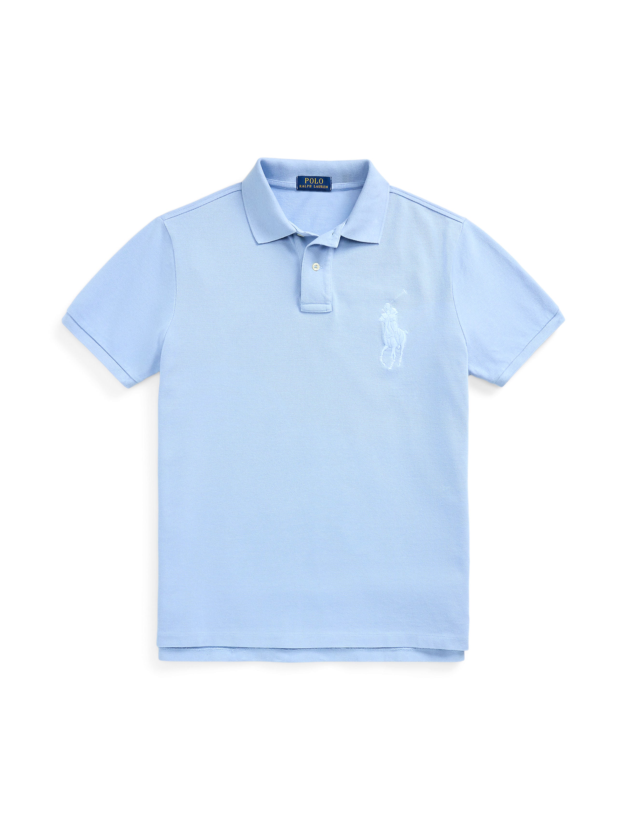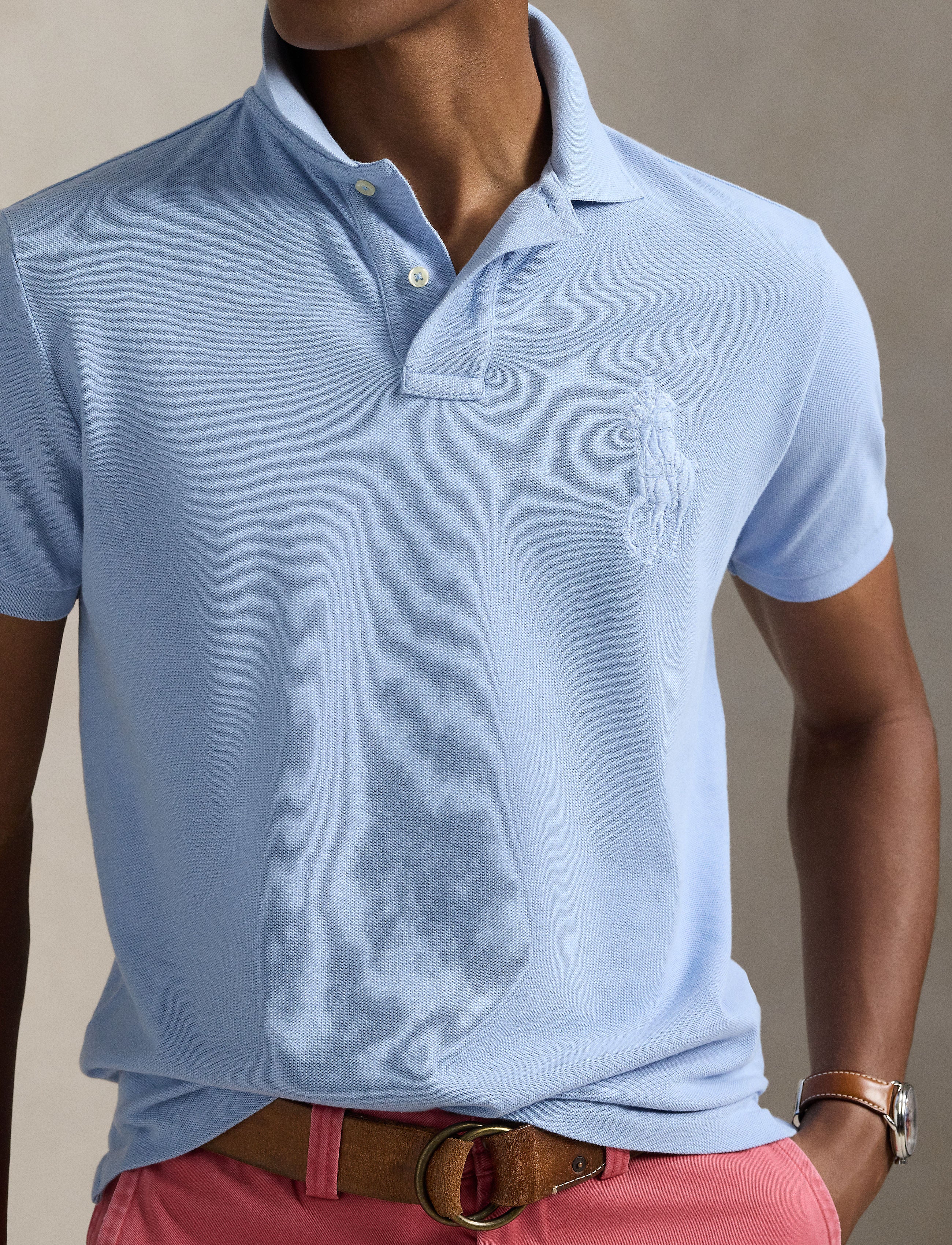 Elevate your wardrobe with Polo Ralph Lauren's Men's Big & Tall Big Pony Mesh Polo Shirt. Crafted with a ribbed Polo collar, two-button placket, and signature embroidered Big Pony, this blue shirt exudes sophistication and luxury. Made with 100% cotton, it offers comfort and style for the modern gentleman.