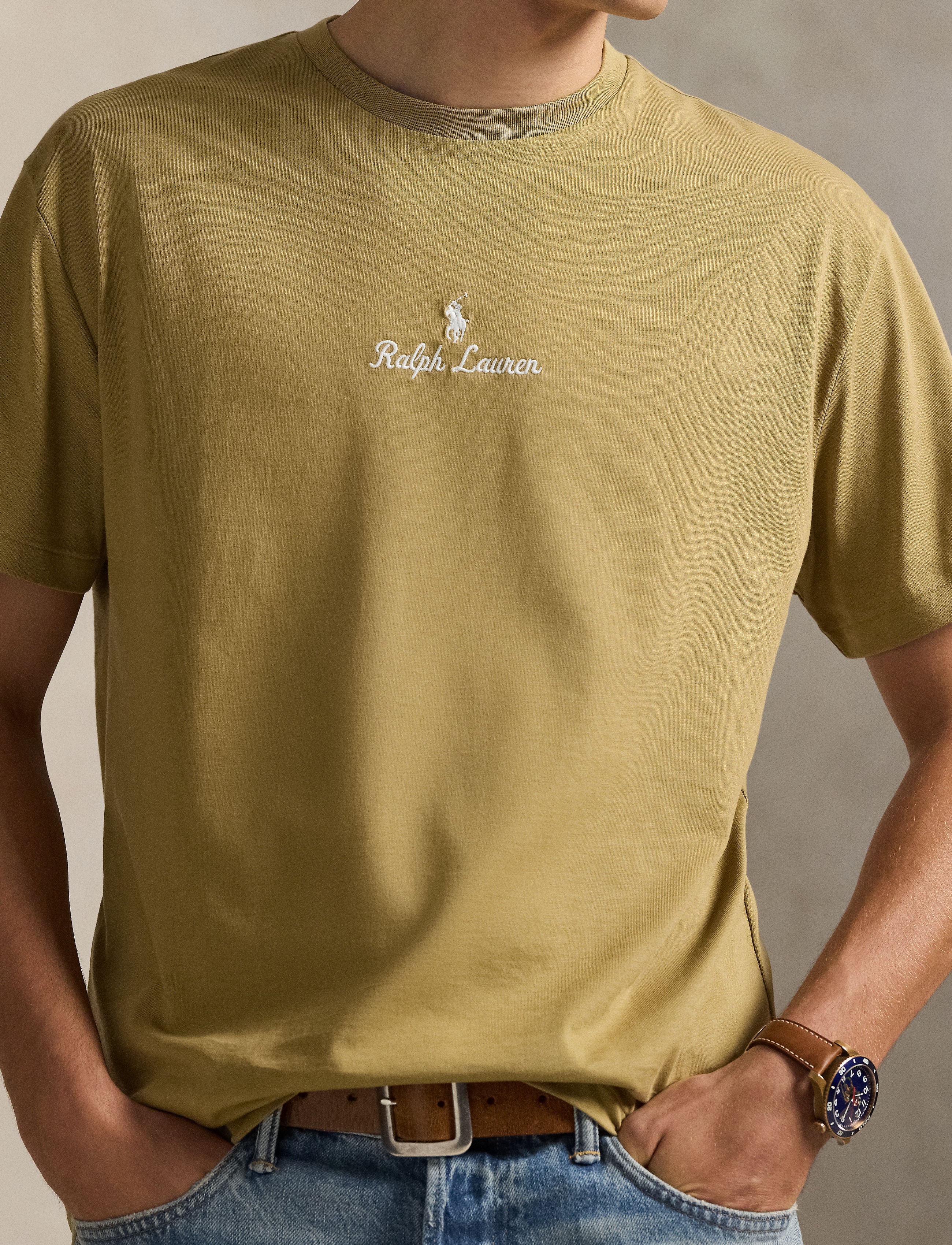 Elevate your everyday wardrobe with this classic Polo Ralph Lauren short-sleeve tee shirt in versatile khaki. Featuring the iconic polo graphic centered on the chest, this piece delivers timeless style that works effortlessly from casual outings to relaxed office settings. The crew neckline and straight hem create a clean, polished silhouette, while the regular fit ensures comfortable all-day wear. A wardrobe essential that pairs seamlessly with jeans, shorts, or chinos—invest in quality that lasts.